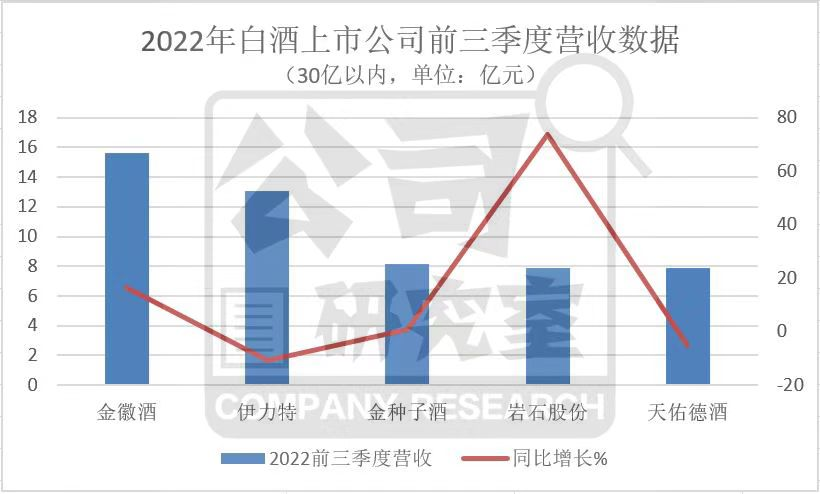 腰部7家公司中,酒鬼酒(000799,SZ)同比增速最高,在去年同期增速高达134,2%的基础上,三季度同比增速依然达到32%;口子窖(603589.SH)同比增速最差,仅3.67%,去年同期35%。