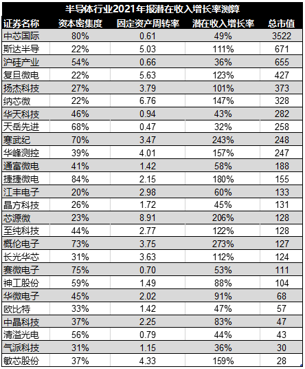 按照中芯国际的数据,资本密集度80%,杠杆率大约0.61倍,对应的2022年潜在收入增长率是49%。也就是说,以中芯国际现有的固定资产建设水平,足够支撑收入将近50%的增长。