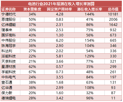 电力设备行业有两个细分行业的中位数潜在收入增长率超过35%,即电池和光伏设备。