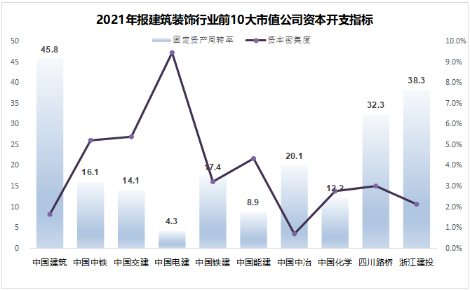 除了中国电建、中国能建的固定资产周转率在10以下,其他主要的建筑装饰公司固定资产周转率都在10以上,这也意味着这个指标的意义不大。