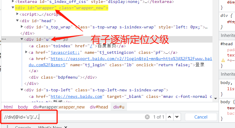 串联查找,这一项可以理解为父级元素的基础上直接查找所需的子元素。当元素定位不到的时候可以尝试此方法,不过比较的笨拙,但是实在。