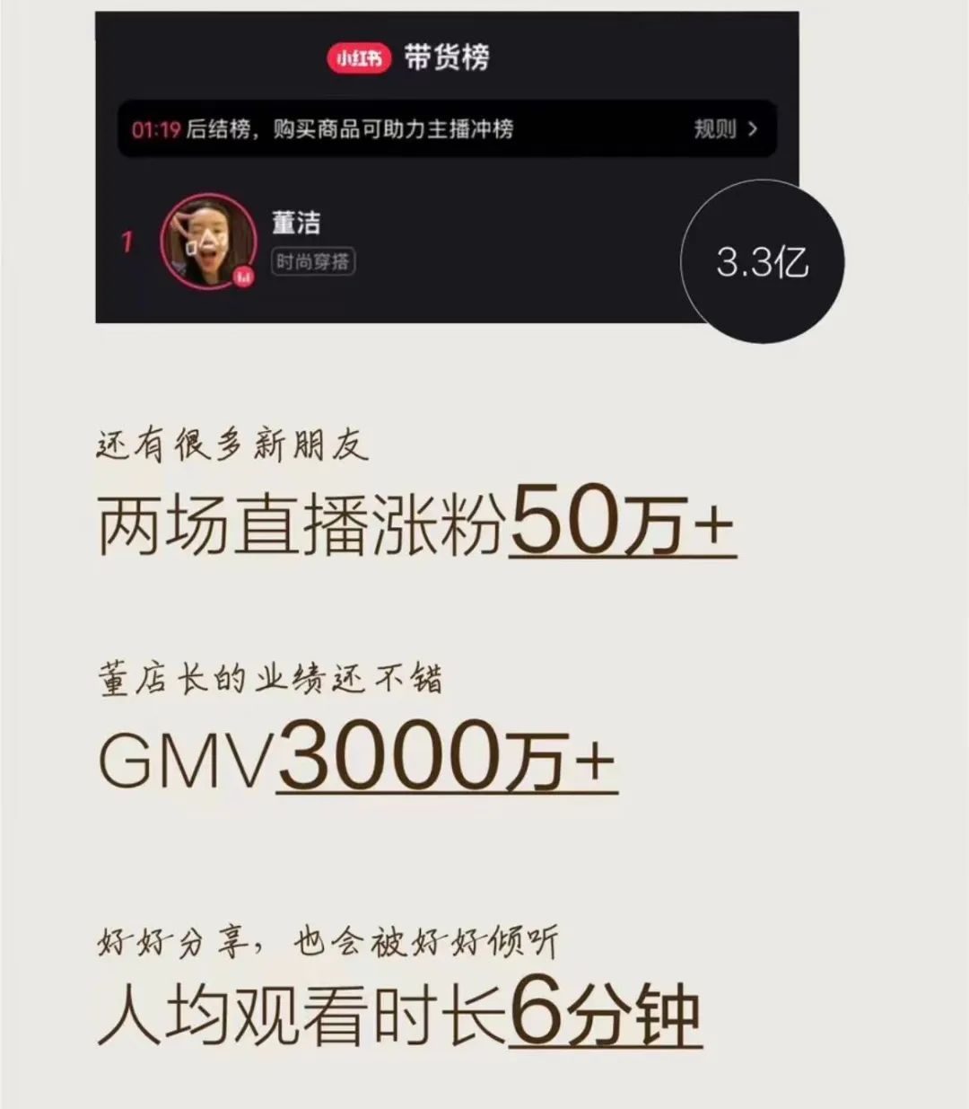 不过,没有强敌惦记的“一姐”当然也不是真顶流。凭借董洁这根独苗儿,小红书的直播带货刷了一波存在感,能走多远却是未知数。