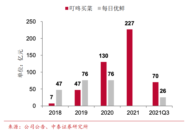 「两者的轮次不同。」陈伟指出,2020 年,每日优鲜已处 D 轮,与对手相比,这是一个不利的时机。「D 轮之后投资人开始考量盈利能力和经营,而叮咚正是要铺规模的阶段。」另一方面,每日优鲜当年的估值已接近 30 亿美元,「市场上能够接住的资本有限。」