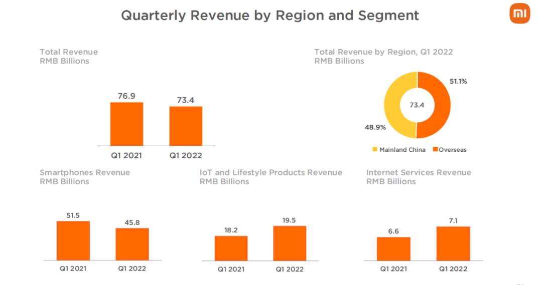 昨日,小米发布了今年第一季度的业绩数据,数据显示第一季度小米营收实现为734亿元,同比下滑4.6%,**这也是其自2018年上市以来首次在营收上出现下滑现象。 **