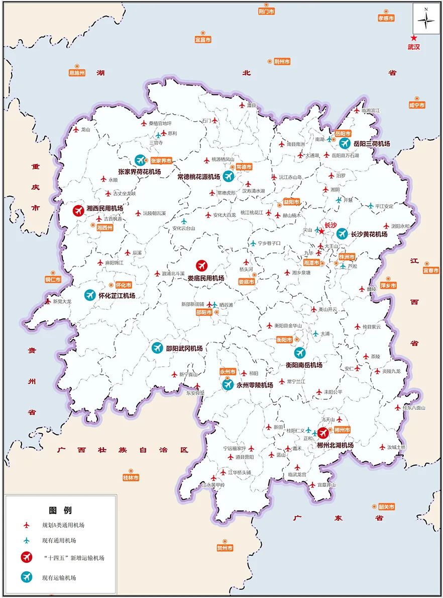湖南省“十四五”机场规划示意图 来源:湖南省人民政府网