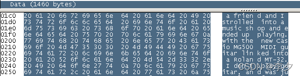 从图中我们可以看出这些数据内容都是随机生成的,没有任何规律。这种数据类型最为适合模拟广泛的数据传输情况。
