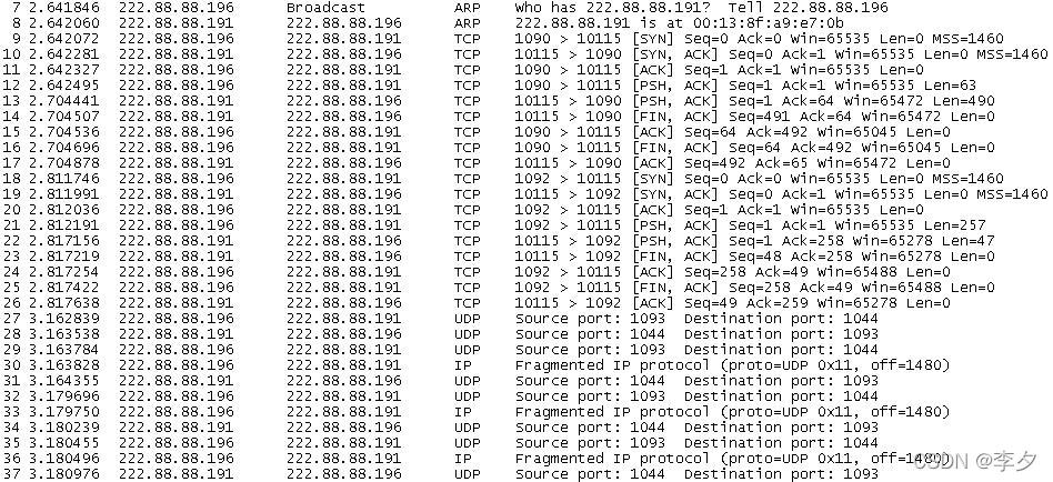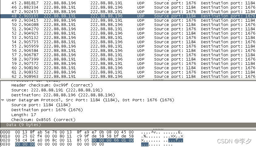 由于UDP协议本身是面向无连接的,所以通过抓包我发现它并没有像TCP协议那样终止连接的过程,而是就直接停止了数据的发送。