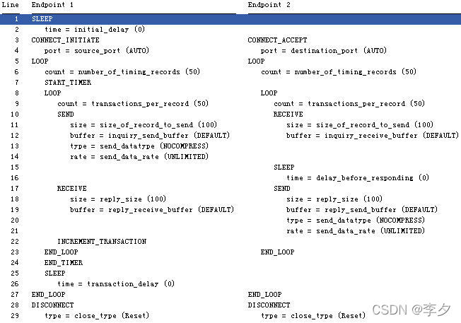 这一节主要对于Throughput脚本的结构进行详细的分析,列举测试脚本中的各个变量、具体含义以及各变量的不同设置对测试结果的影响。在分析完变量意义的基础上对Chariot软件测试脚本的基本结构形式进行了熟悉。