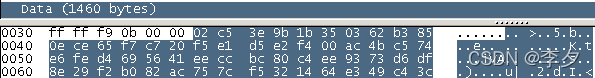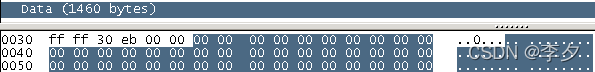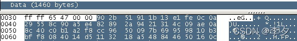 这是我抓下来的整个数据传输开始的第一个传输的数据段的情况,这和前面的规律也相同。