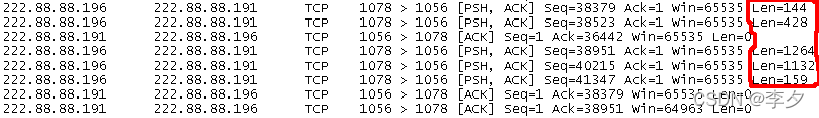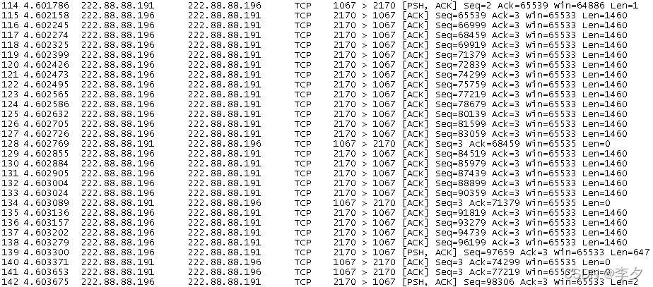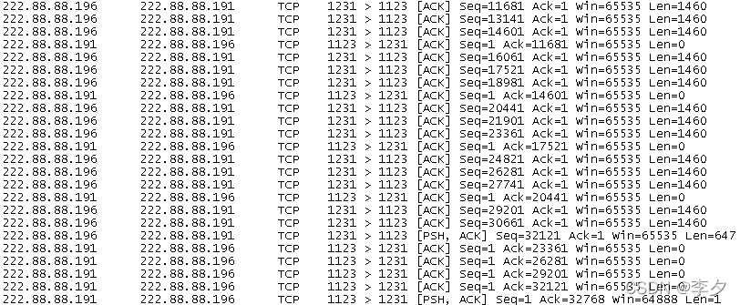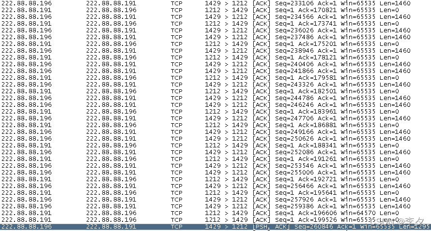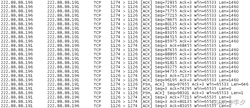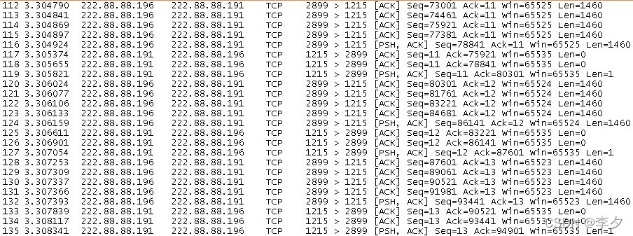 接下来我抓的这一张图,和上面的图都是同一组数据传输的过程,只不过下面的这张图是整个过程中后面数据传输的情况。