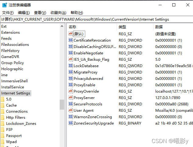 根据路径找到 计算机\HKEY_CURRENT_USER\SOFTWARE\Microsoft\Windows\CurrentVersion\Internet Settings