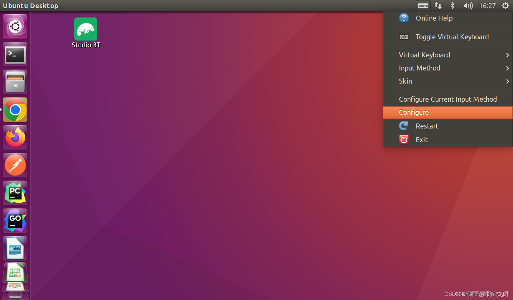电脑重启完成,右上角出现键盘图标,点击"Configure":