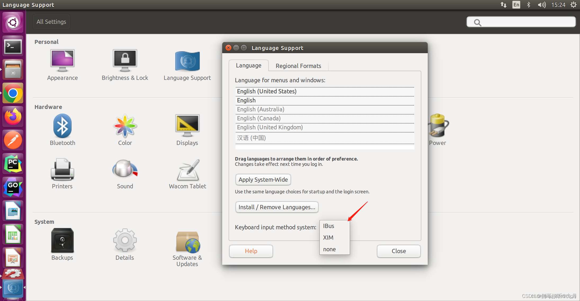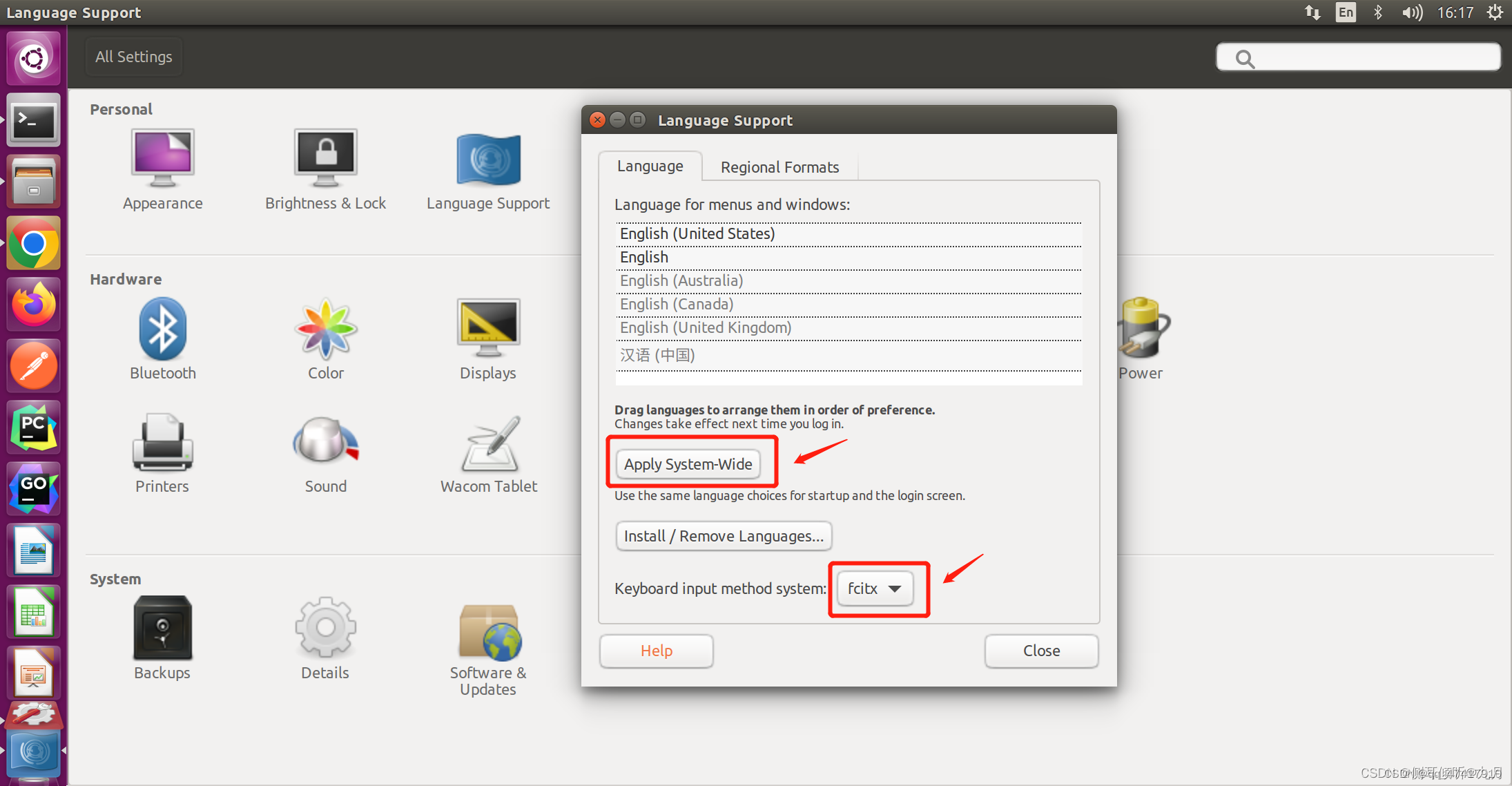 安装完成,返回"System Settings" —— “Language Support”: