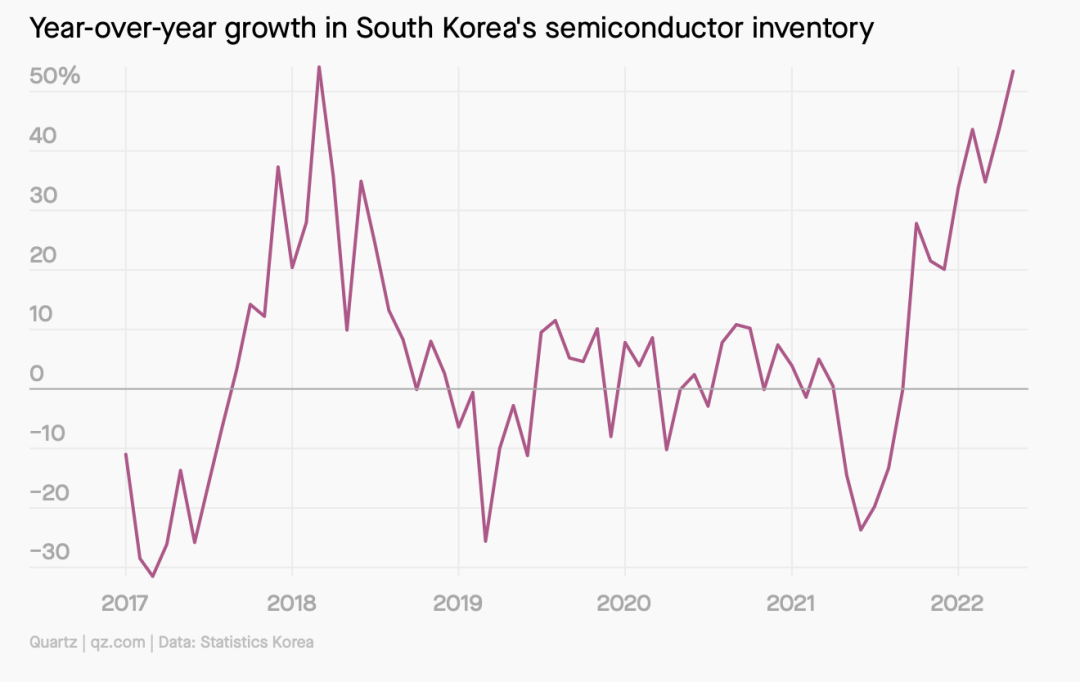 当供需失衡,库存提高,芯片厂商的“卖方市场优势”就要得到稀释,见下图