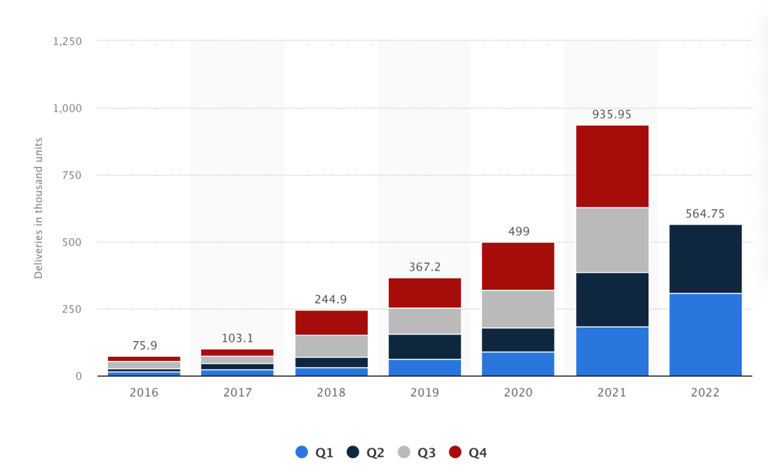 那么是否是2020年特斯拉出现了质的飞跃呢?我们整理了2016年至今特斯拉分季度的出货量情况,见下图