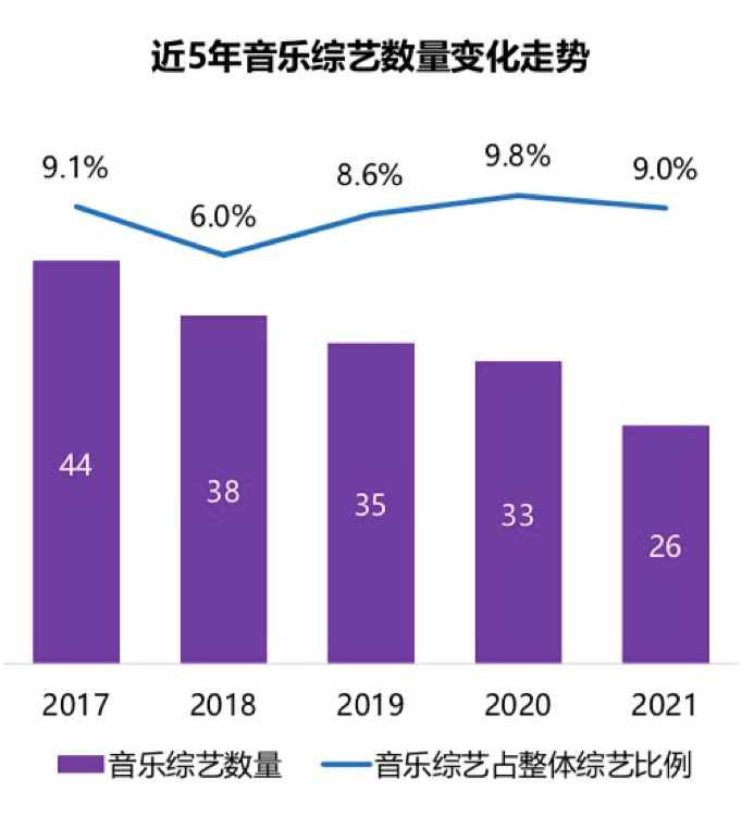 而且,开年的时候各家还热火朝天,按计划本该有近50档音乐综艺上线,但最后实际只有26档音乐综艺播出,数量呈现连年走低的趋势。