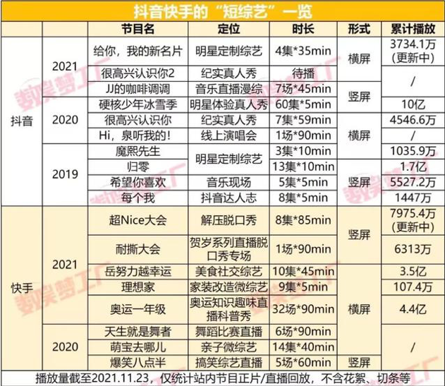 从2019年开始,抖音、快手等短视频平台都已经开始逐步布局自制综艺,尤其是抖音,在《为歌而赞》之前已尝试过包括音乐现场在内的多种短综艺形式。而短视频与音乐有着天然的强关联,逐步入局音乐综艺的趋势还将继续加强。