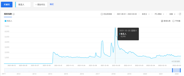 《一年一度喜剧大赛》给告五人百度搜索指数带来的变化