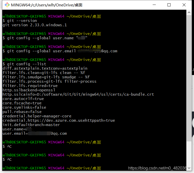 在git bash\cmd中分别输入:git config --global user.name "wlh"