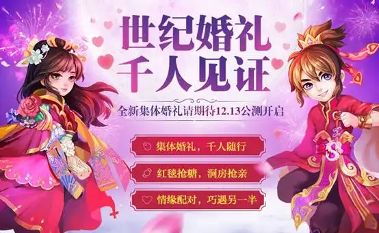 2016年的平安夜,为了宣传随公测版本上线的新功能,《梦幻诛仙手游》为100对新人举办了一场声势浩大的集体婚礼。