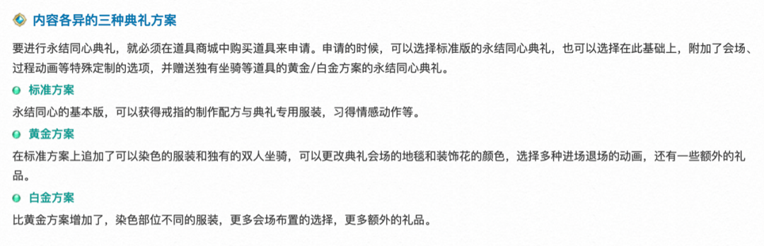 更妙的是,《最终幻想14》还提供了种种不同档位的婚礼套餐,让你用真金白银证明自己的爱。