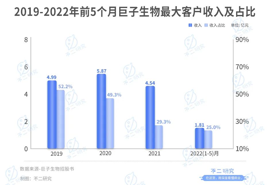 目前,巨子生物还未摆脱对单一大客户的依赖。2019-2021年及2022年前5个月,来自最大客户西安创客村的收入分别为4.99亿、5.87亿、4.55亿和1.81亿,占同期总收入的52.2%、49.3%、29.3%和25.0%。