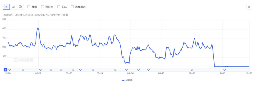 按理说,也算在大火的赛道上找到适合自己的模式,不说实现腾飞,整体数据应该也还不错。可根据点点数据统计结果来看,Slide 在过去 1 年的下载和营收数据都不算乐观,365 天累计下载量总和都不到 7 万次。