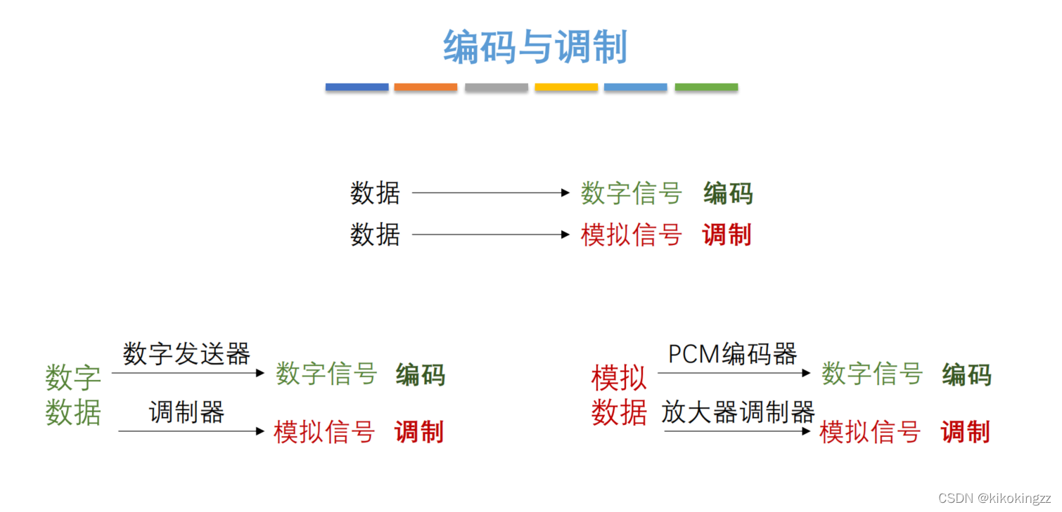 调制:用模拟信号承载数字或模拟数据;将数字基带信号的范围搬移到较高频段,并转换为模拟信号,称为调制。
