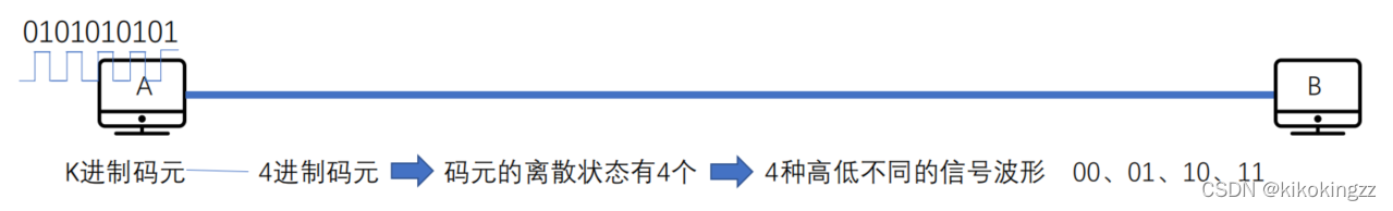 1码元可以携带多个比特的信息量。例如,在使用二进制编码时,只有两种不同的码元,一种代表0状态,另一种代表1。