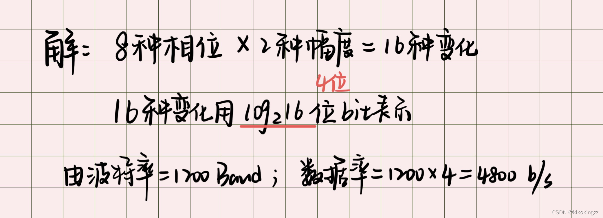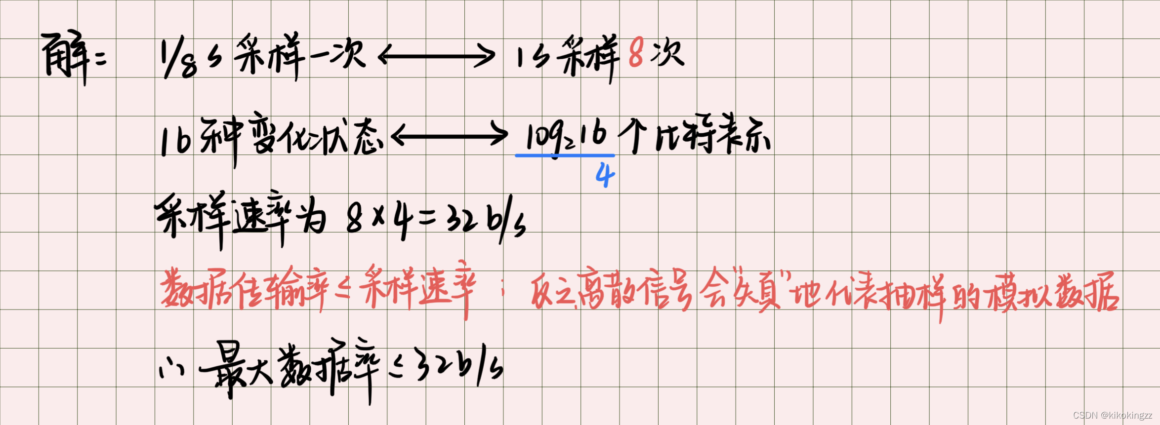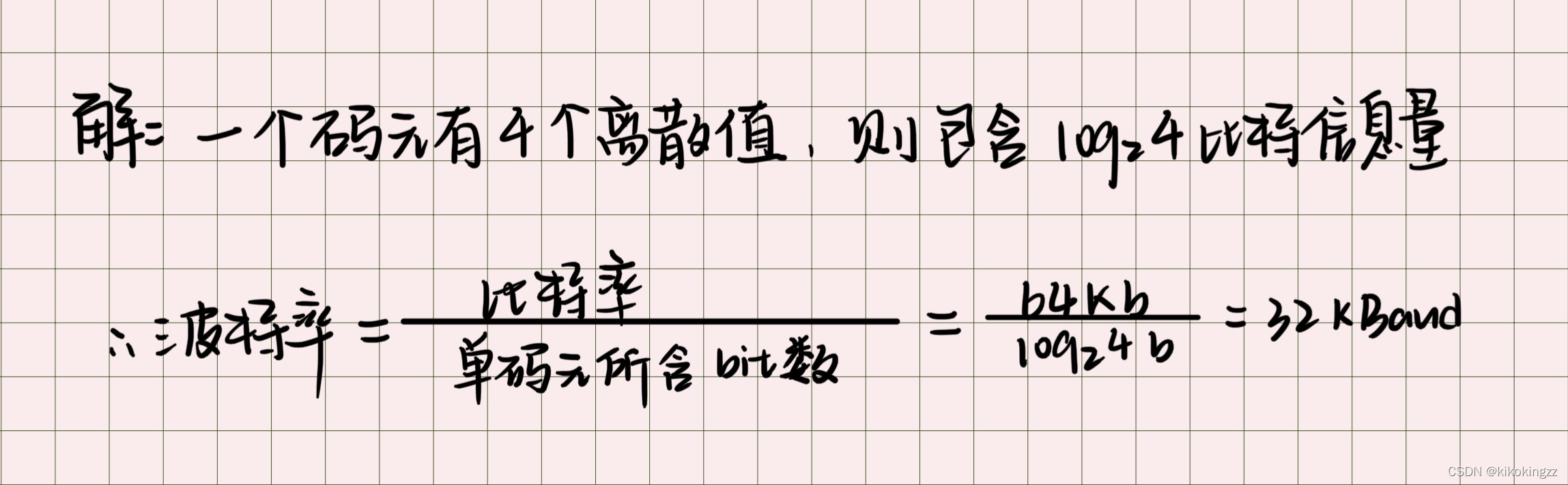 值得注意的是,本题中给出的“每秒采样24k次”即采样频率为24kHz是无意义的,因为其超过了波特率的上限2W=16kBaud,违反了采样定理。