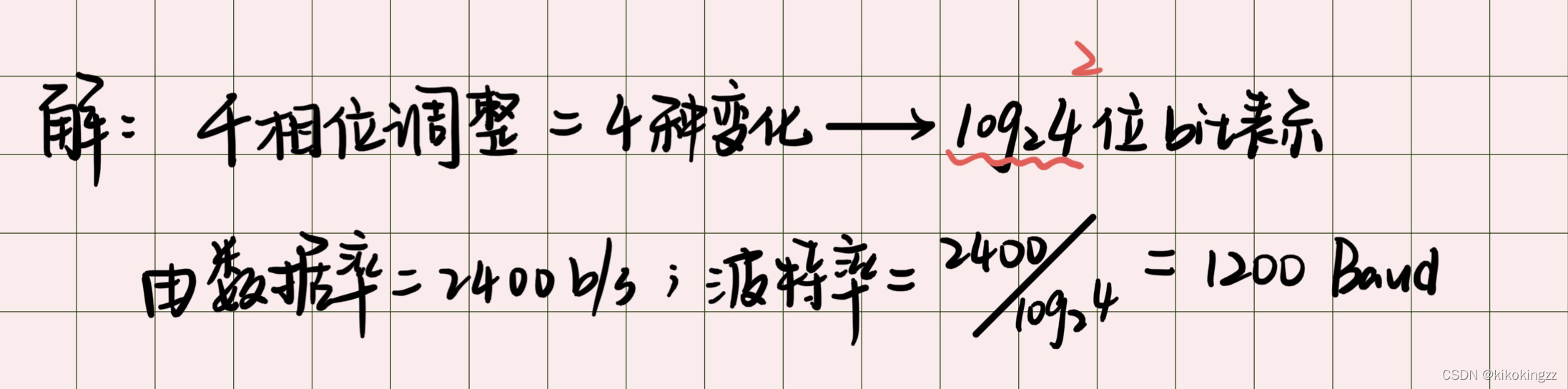 051.【2011统考真题】若某通信链路的数据传输速率为2400b/s,采用4相位调制,则该链路 的波特率是( )。 A.600Baud B.1200Baud C.4800Baud D.9600Baud🍊详细题解: