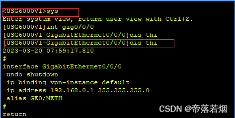 [USG6000V1-GigabitEthernet0/0/0]interface GigabitEthernet 1/0/0