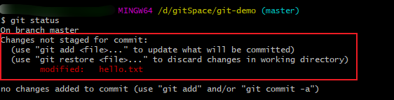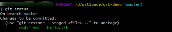 2、查看本地库状态(工作区有文件,未添加至暂存区)