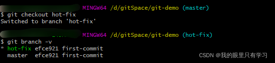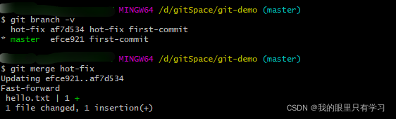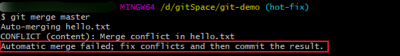 操作说明:- 在 master 分支上合并 hot-fix 分支