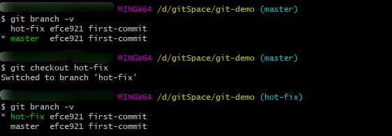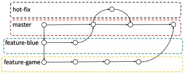 - master、hot-fix 其实都是指向具体版本记录的指针。