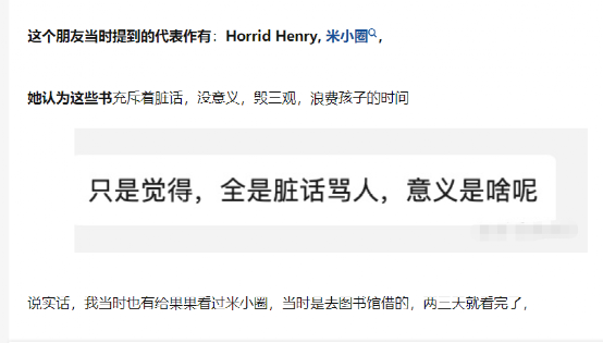 通过家长们的反馈不难看出,《米小圈》系列在家长群体里,已经树立了一个较为负面的形象。而这样的作品,也在今年夏天甚至被一些省市教育局干脆列为禁书。