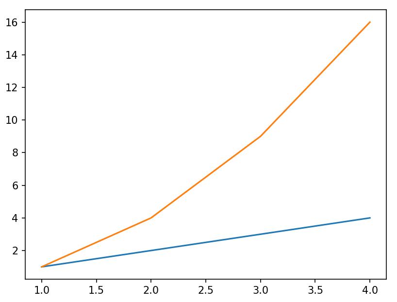 plt.plot(x, y2) #可看出绘制多条线条时,系统会自动更改线条颜色,第一个默认值为蓝色'b'