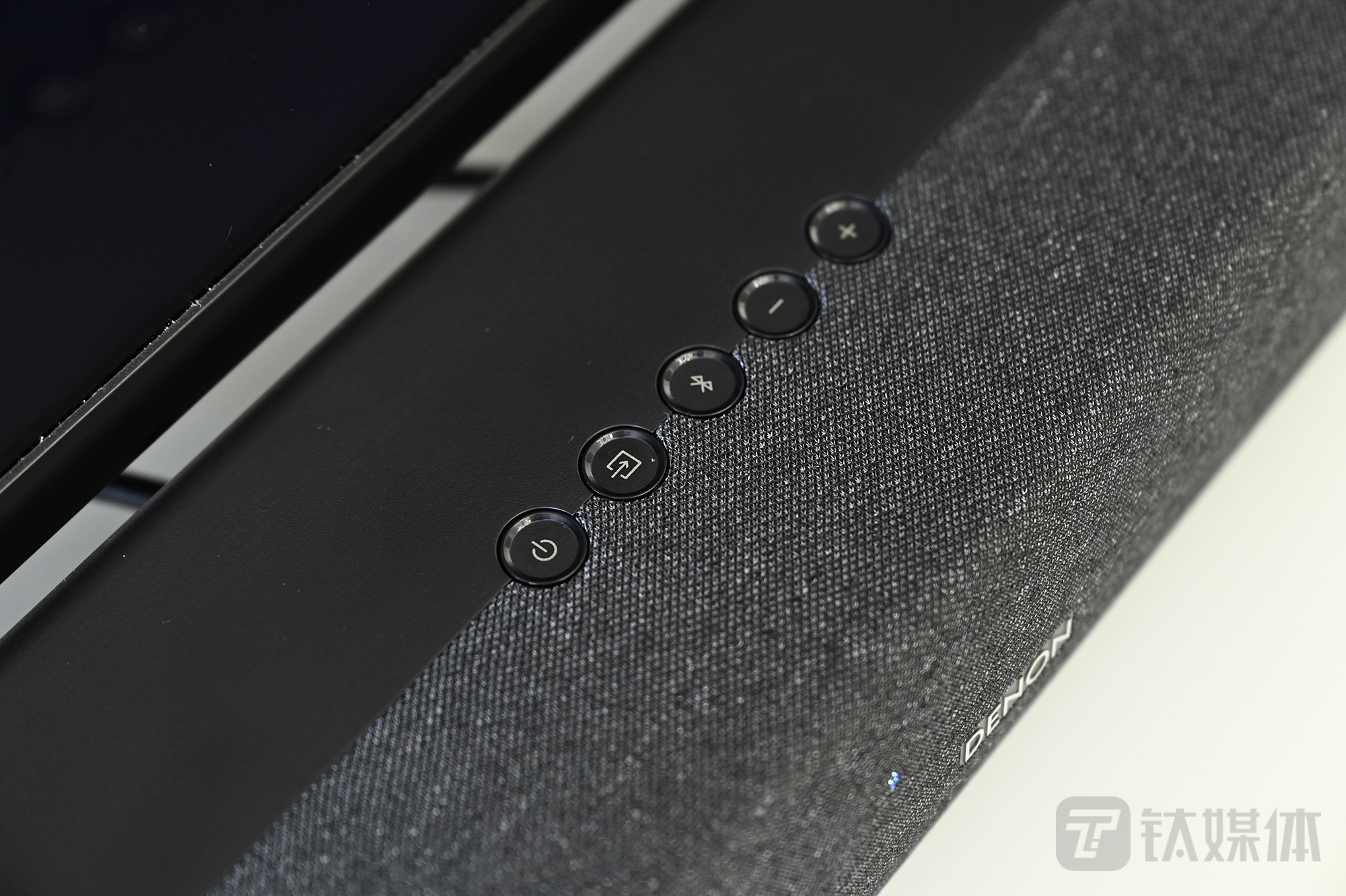 上面从左到右按键分别为开机电源键、输入源选择、蓝牙连接,音量加减。都是必要和实用的按键,方便用户直接操作。