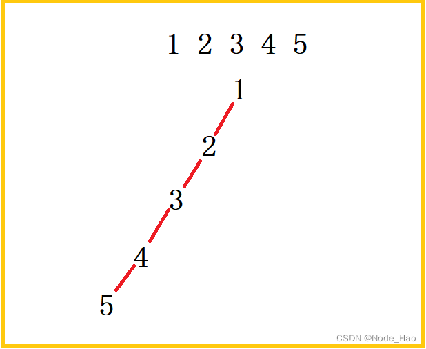 **Tips:如果数据是有序的假设为[1,2,3,4,5,],那么就会出现如下图所示单分支的情况,由于递归占用栈的空间,如果数据过大一定会出现栈溢出(stack over flow)的情况.所以我们需要优化快速排序找基准的方式. **