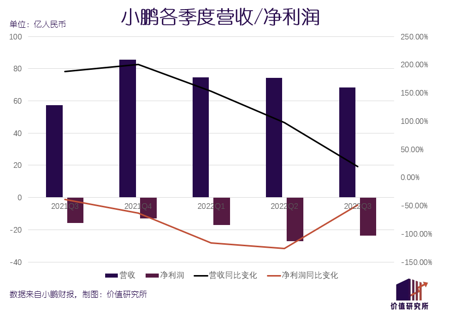 北京时间11月30日美股盘前,小鹏汽车公布了2022财年三季度财报。和此前公布财报的蔚来相比,小鹏的成绩单并没有太多过人之处:营收同比保持增长,但环比出现下降;亏损较去年同期继续放大,仍徘徊在高位;引以为豪的交付量也较巅峰时期明显退步,把冠军宝座拱手让给哪吒。