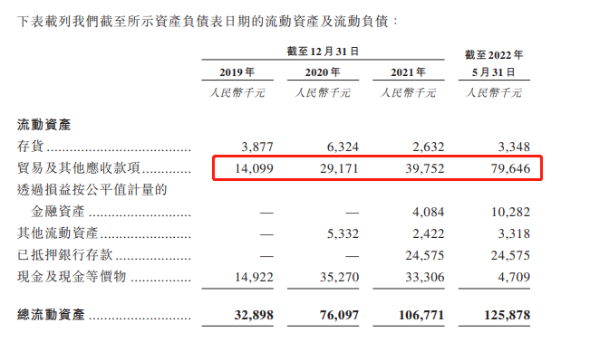 招股书显示,乓乓响的应收账款,已从2019年年末的1409.9万元,激增至今年五月末的7964.6万元。