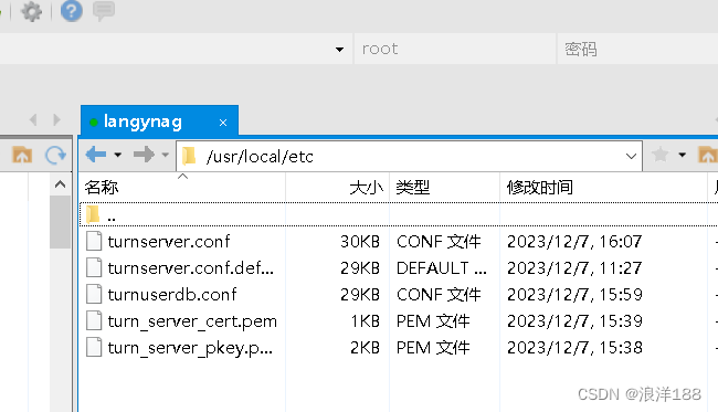然后在当前文件夹下,通过命令创建一个文件turnuserdb.conf用于存储用户名和信息
