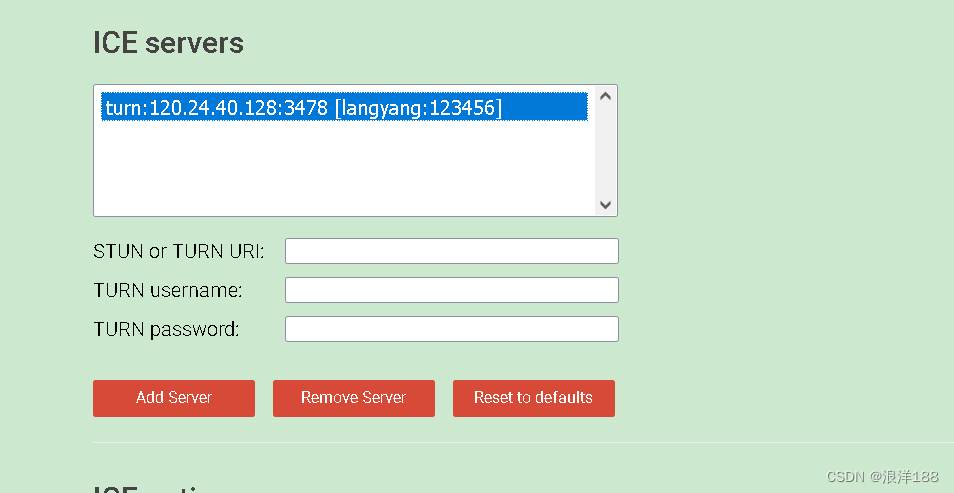 第一栏是 turn:公网ip:端口号 (经测试,如果不填端口号,默认是3478端口)