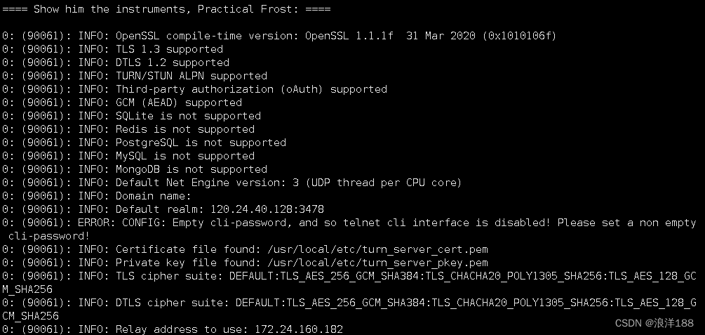 turnserver -v -r 你的公网ip:3478 -a -o -c /usr/local/etc/turnserver.conf