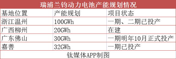 今年6月21日,瑞浦兰钧佛山基地正式开工建设,项目一期计划施工期300天,预计明年10月正式投产。