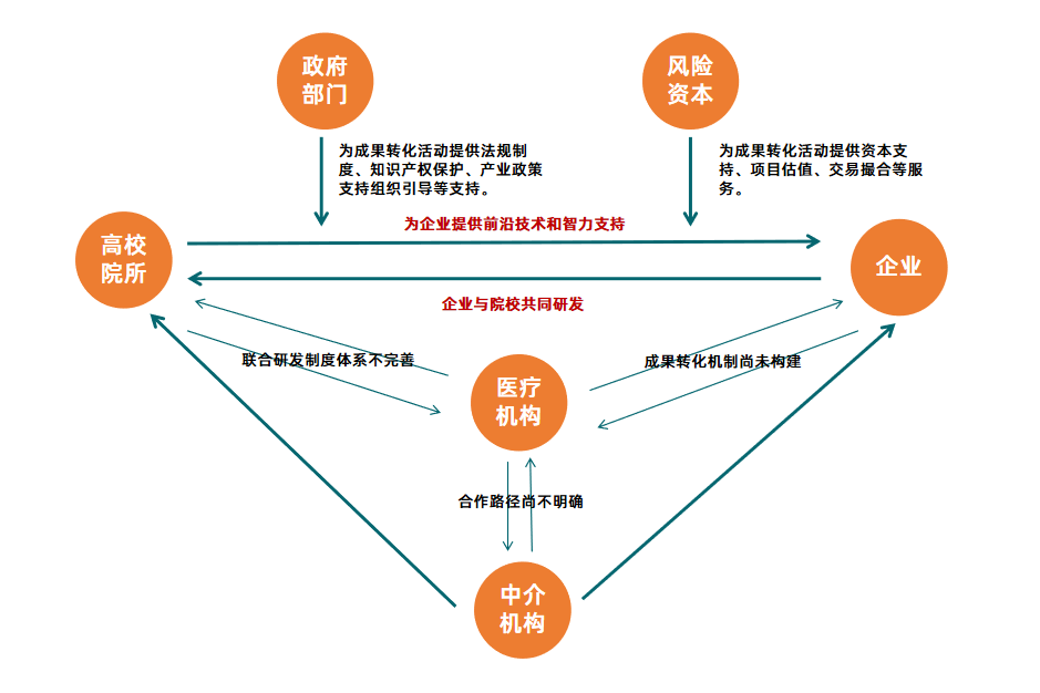 究其原因,一方面是我国的联合开发制度体系不够完善,医疗机构和企业之间的成果转化机制没有完全构建起来;另一方面是医疗机构、技术服务机构以及中介机构的合作路径缺少一个明晰的界定。