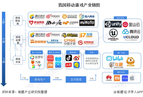▲我国手游产业链图。图片来源:@前瞻经济学人。