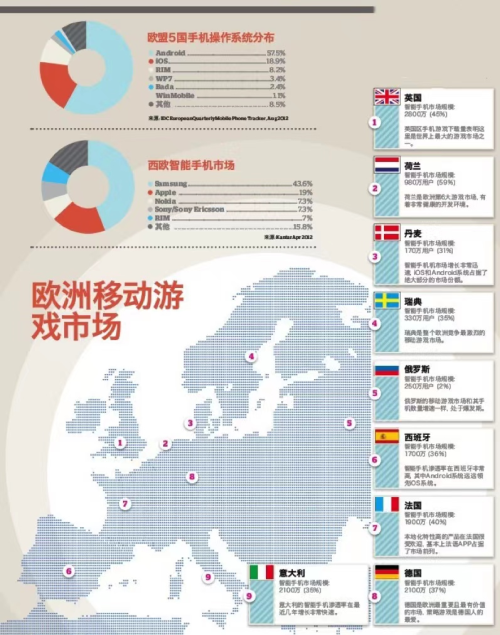 ▲欧洲手游市场分布情况。数据来源:第三方全域数据服务商友盟。