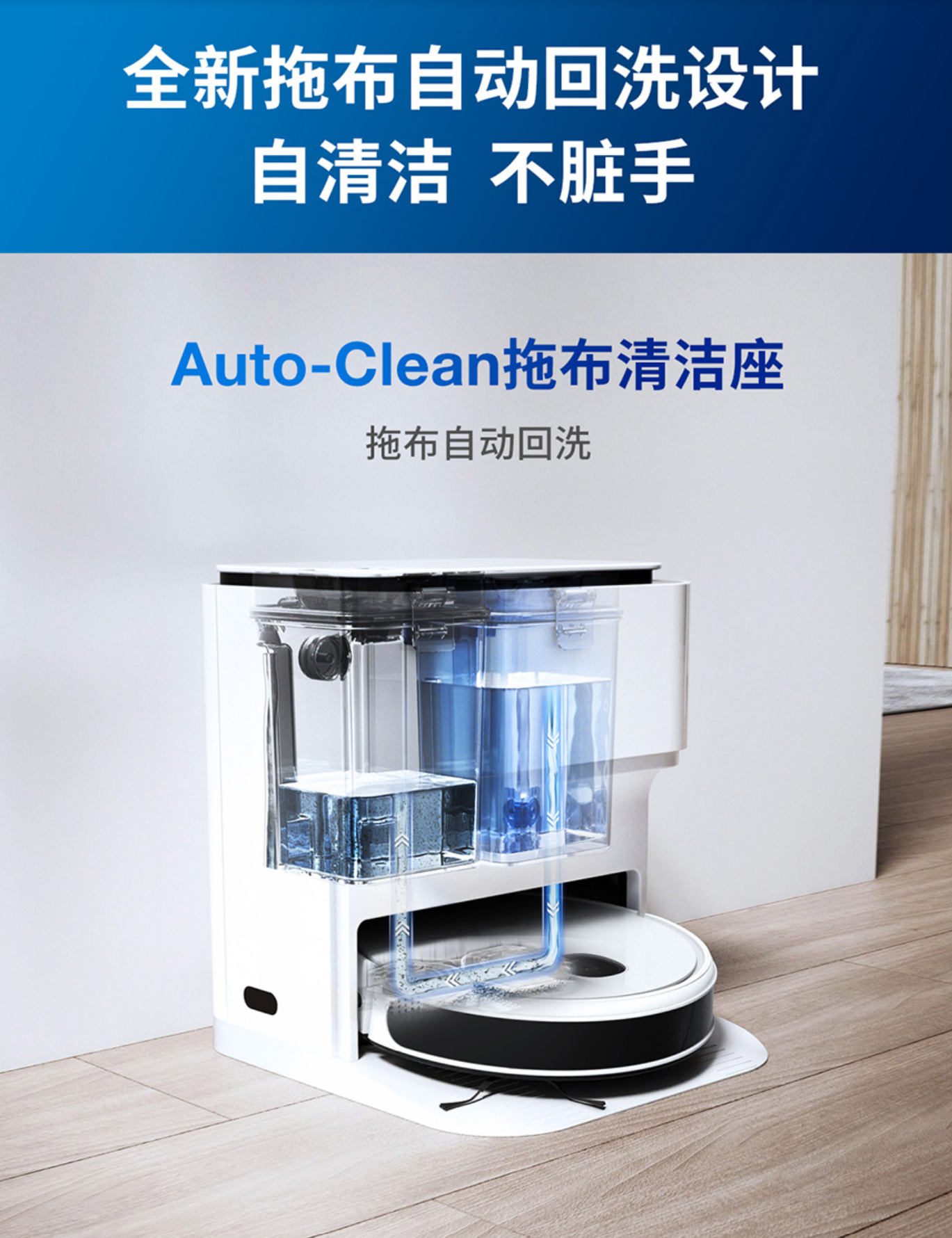 2021年9月,云鲸二代产品上市,再次推出自动上下水功能,不用补清水、不用倒脏水。