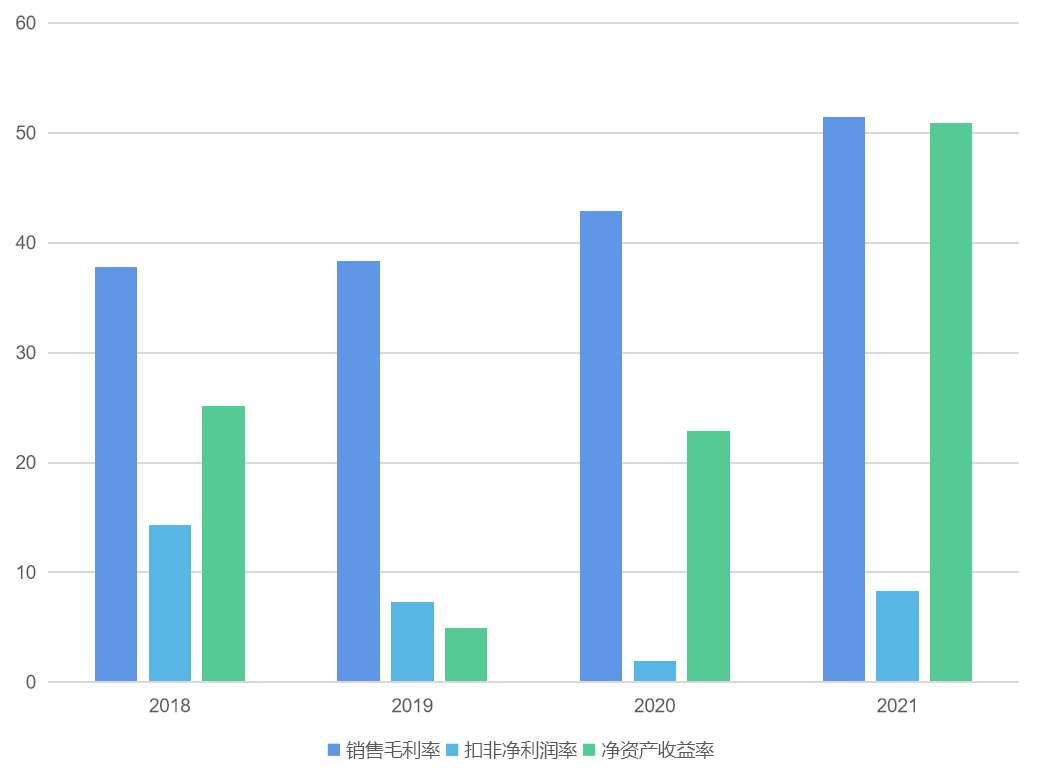 受益于高端战略,科沃斯产品销售毛利率和扣非净利润率比较高,尤其是近两年洗地机大卖,带动整体营收和扣非净利润快速增加,2021年净资产收益率50%,盈利能力很强。